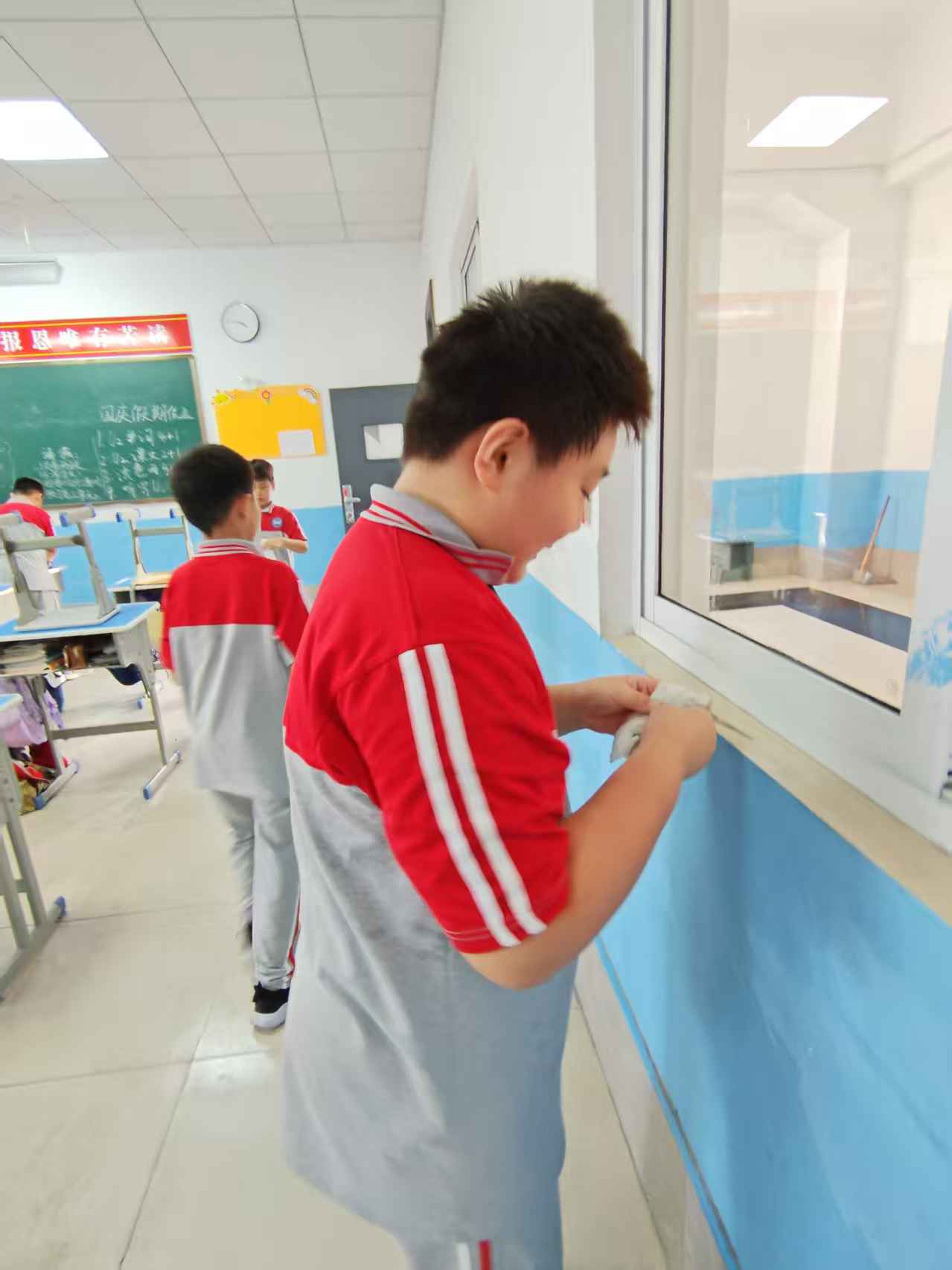 不知不覺中,我們迎來一月一度的班級大掃除。經過兩個大周的學習,班級已經出現了不少的臟亂了。臟亂的環境可不利于我們的學習,所以趁著校假前夕,我們積極分工,將地面垃圾清掃拖凈,將窗戶玻璃洗刷擦干,甚至連窗縫的空隙都用抹布一點點擦除。經過一個小時齊心協力的奮戰,我們的班級終于變得明亮整潔,相信下一周來校后在這樣的班級學習一定會更加有效率。