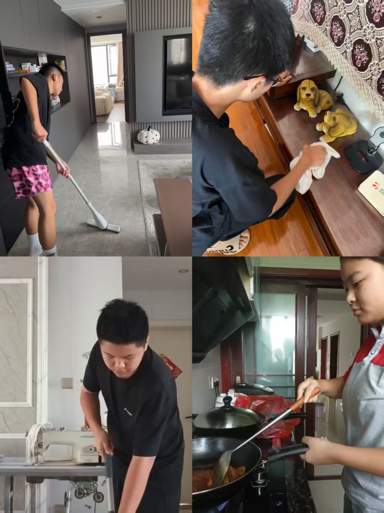 此次活動是在結合校內勞動課的基礎上,讓學生們利用假期空余學習收拾書桌,整理書包、疊衣服、收拾床鋪等基礎家務。家長們紛紛用照片和視頻記錄下孩子們的勞動瞬間,并分享到班級群中,形成家校共育的良好氛圍。活動結束后,班級里還組織了“家務小能手”分享會。同學們通過照片、視頻等形式,展示自己在活動中的勞動成果,并暢談心得體會。
