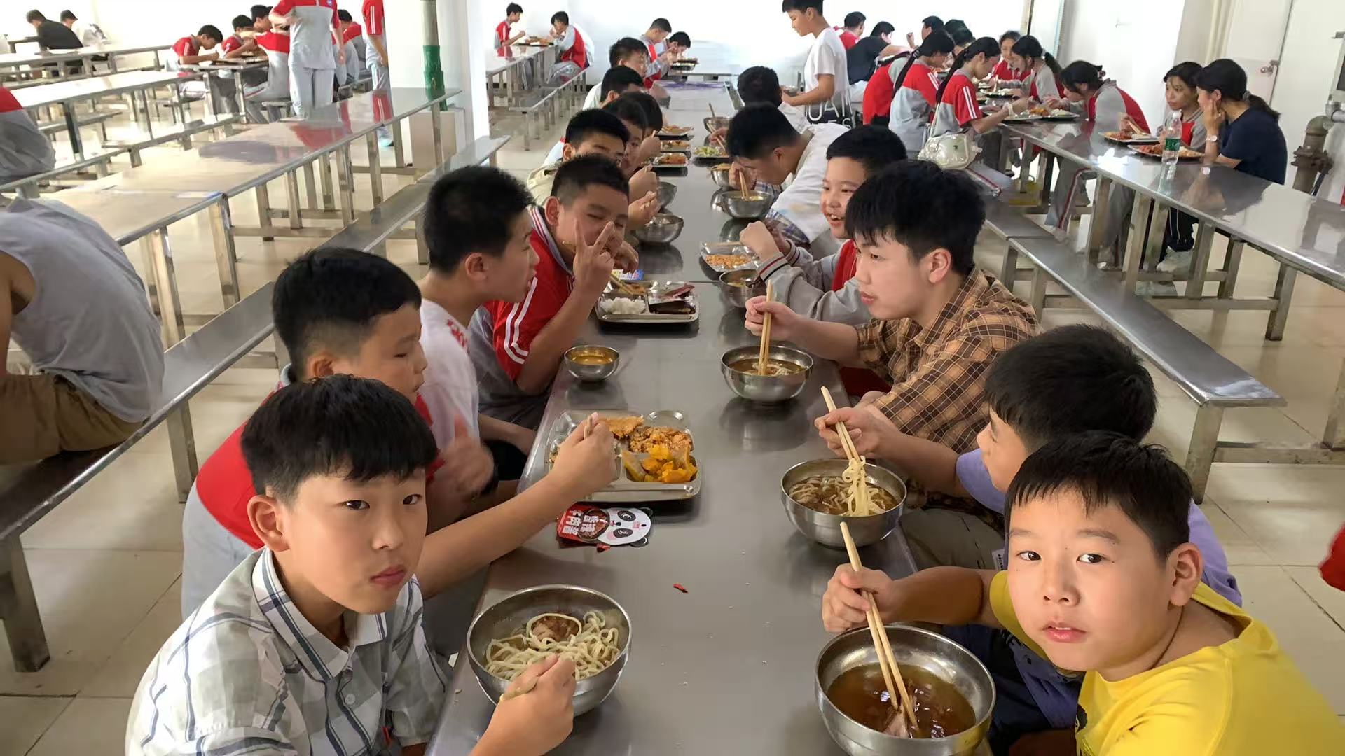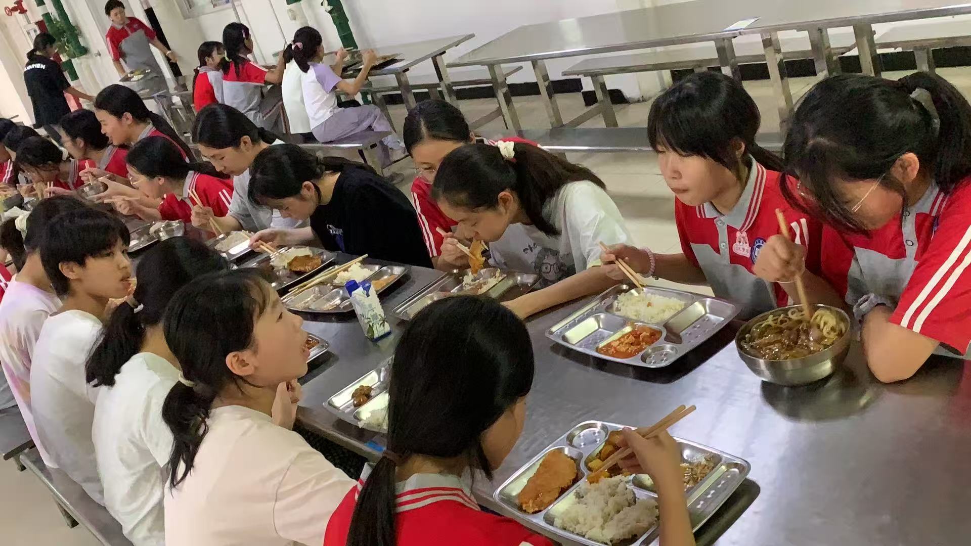 對于初中生的他們,打飯取餐已經非常熟練。餐桌上,男生們討論下午的籃球賽,女生們分享著課間趣事。“一粥一飯來之不易”,越來越多的同學自覺踐行“光盤行動”。