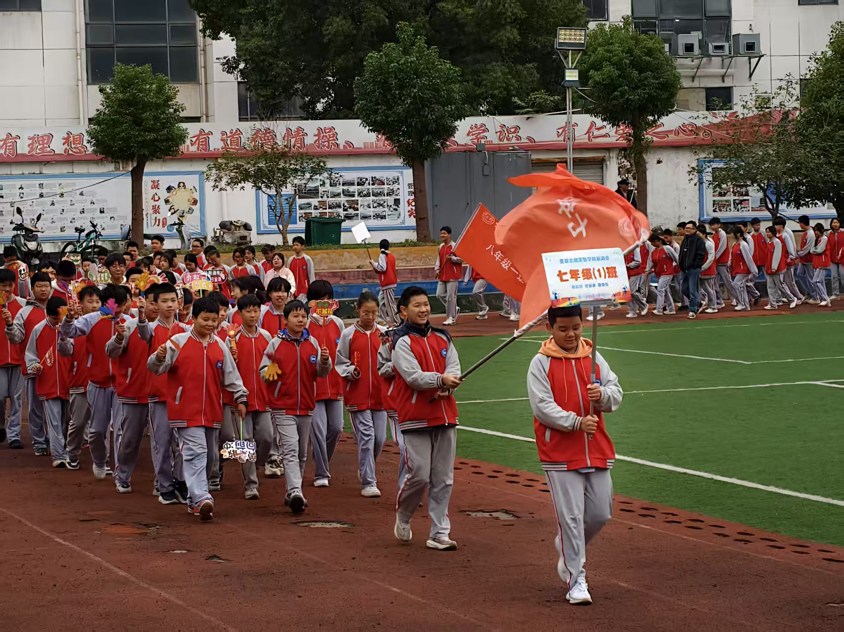 運(yùn)動(dòng)會(huì)開幕式上,701班方陣邁著整齊有力的步伐依次入場(chǎng),瞬間點(diǎn)燃了全場(chǎng)的熱情。同學(xué)們身著統(tǒng)一的服裝,手持精心設(shè)計(jì)的道具,以創(chuàng)意隊(duì)形演繹著青春的活力。“七一班,不一般,團(tuán)結(jié)拼搏勇爭(zhēng)先!” 經(jīng)過幾天的激烈角逐,運(yùn)動(dòng)會(huì)在夕陽的余暉中落下帷幕。對(duì)于七年級(jí)的同學(xué)們來說,這是一次難得的成長(zhǎng)歷練:他們?cè)诟?jìng)爭(zhēng)中學(xué)會(huì)了堅(jiān)持,在合作中懂得了團(tuán)結(jié),在挫折中收獲了勇氣。